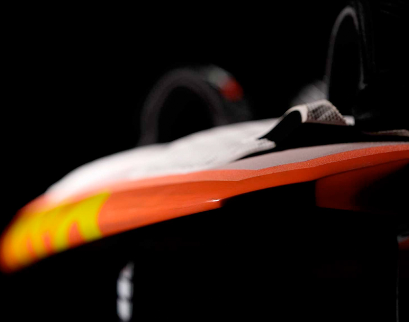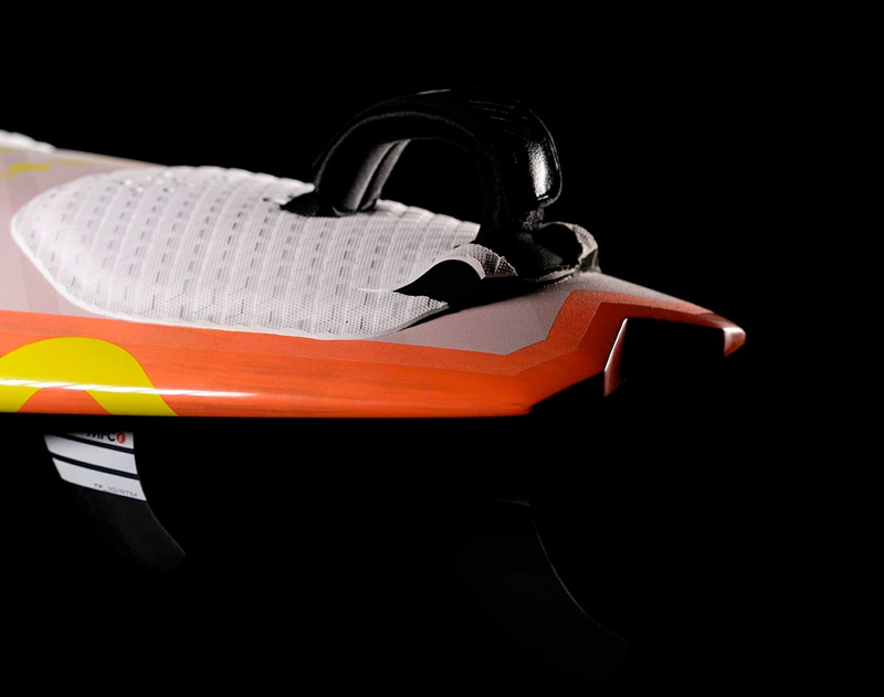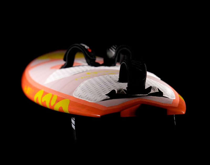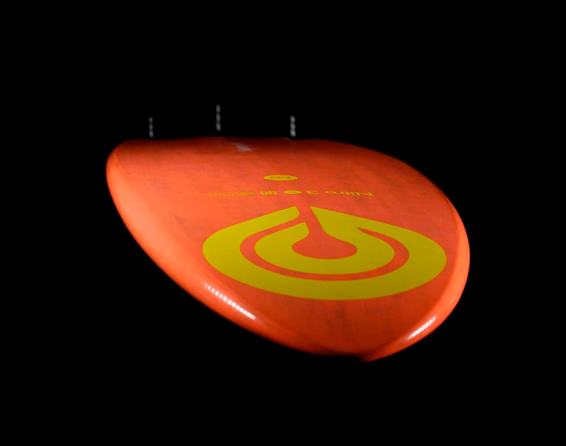 MB:これはまったく新しいプロジェクトで、ここ数年で最も多くのプロトタイプを作ったボードなんだ。初期には、風が十分なコンディションでとても速いボードはあったが、特にフロントサイドではまだ乗りにくかった。私は、弱い風でも、何があってもいち早くゲティングアウトし、風上に上り、ヒートを支配できるボードが欲しかった。初期段階のプロトタイプは、機動性とスピード性能は満足できたが、その時点では波乗りのフィーリングが足りなかった。これが一番時間がかかったことです。