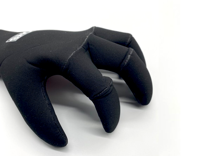 この5本指グローブのメリットは数々ありますが、着けたままで繊細な手先の作業が出来たり、オープンパームと指の中間にある4つの穴によりブームやパドルを握った時の手の疲労を軽減させる事やグローブを着けたまま泳ぐ事が出来ます。