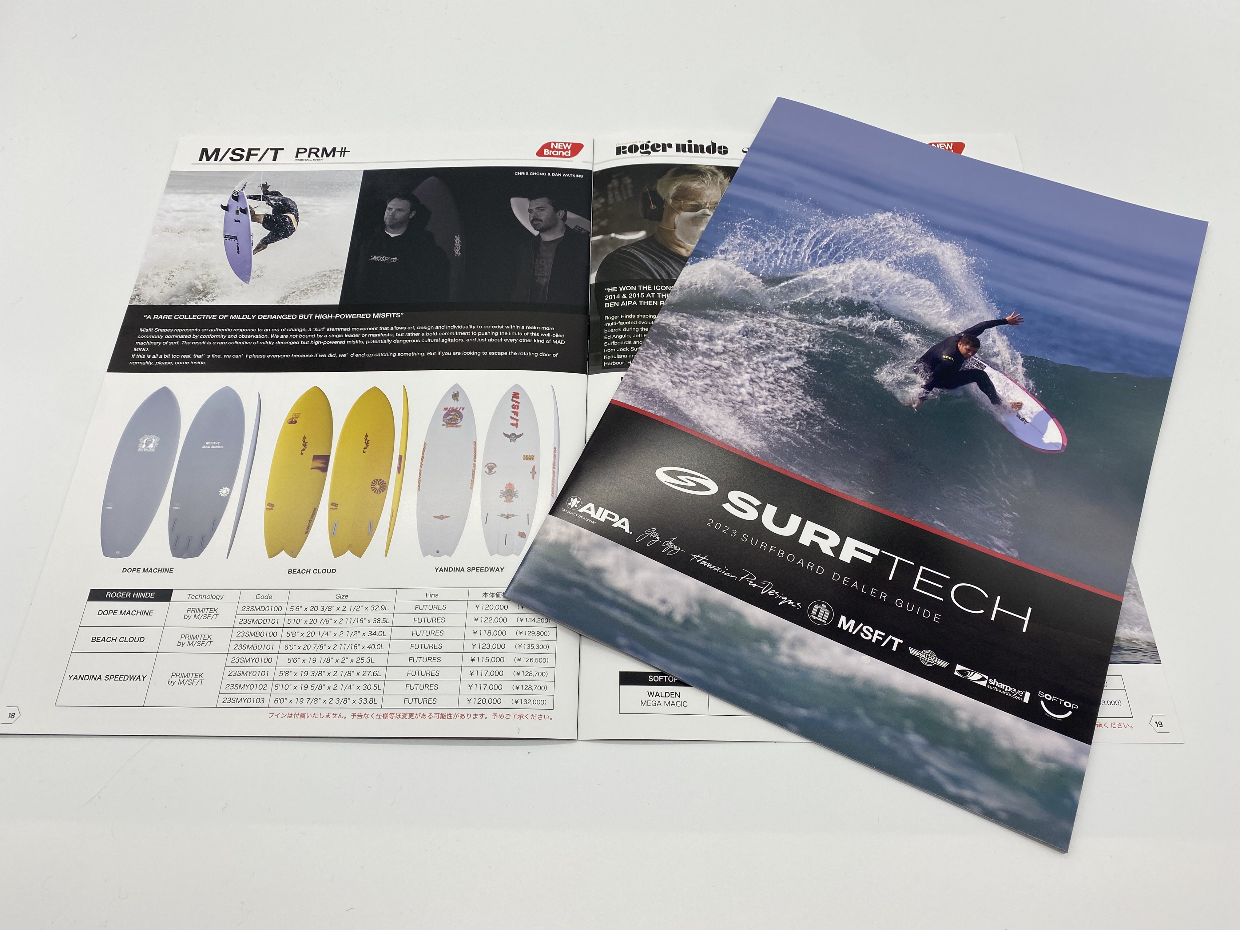 ![]() | 世界の名だたる有名シェーパーのボードラインナップを誇る SURFTECHの2023カタログが完成いたしました。 今期は『AIPA』のラインナップが豊富になり 新たに『M/SF/T(ミスフィット)』が追加されています。 シャープアイ、ジェリー・ロペス、ウォルデン、ドナルド・タカヤマなど サーフテックのオリジナル工法で仕上げられたボードが掲載されていますよ! *ダウンロードカタログは 今しばらくお待ちくださいね。 |