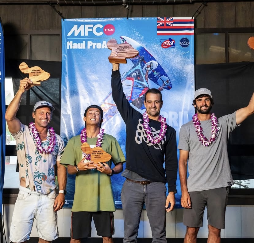 ![]() タイトルをそうなめにしたGoyaファミリーとの写真。本当に誇らしい! | 石井孝良選手がWorld Cup MAUI Pro-Ame2025で またも表彰台に!! 2025年よりGoya Windsurfingに移籍し、飛ぶ鳥を落とす勢いで邁進する 石井孝良選手 先日 HAWAII MAUI島 HO'OKIPA Beachで行われた国際大会で 見事3位という結果を残しました! 並みいる世界の強豪選手たちと素晴らしいヒートを繰り広げ、セミファイナルもトップの点数をたたき出しファイナルへ ファイナルの前半は素晴らしいパフォーマンスでリードをし、終始攻めの姿勢を貫き 見事に表彰台の一角をになった。 日本の御前崎大会でも3位、プエルトリコ大会では2位をいう結果に続き 今大会も表彰台に上がった石井選手 この先もまだ試合は続くが、日本人選手が世界でこれほどの戦績を残すのは ウインドサーフィン史上初めての事 とにかくこれからも彼から目が離せないとともに、大きな期待を寄せて 日本からエールを送っていきたい。 |