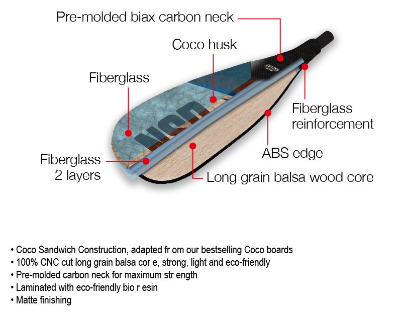 Coco Hybrid paddles are made from organically grown coconut husk fibers and are extremely durable, lightweight, and eco-friendly. Its design is based on the carbon Speedster with an extra pronounced dihedral, for efficient paddling. Equipped with full ABS rail for extra protection against dings and scrapes: