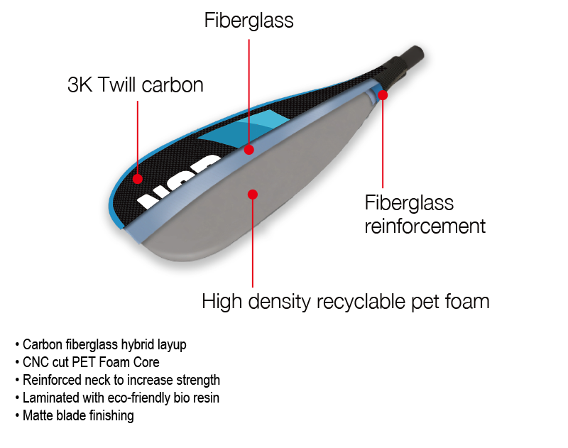 The two-piece lightweight, Carbon Hybrid adjustable paddle, with an 86 sqi blade, offers the perfect performance package for schools, rental centers, and people who regularly share their paddles with others.