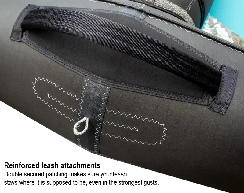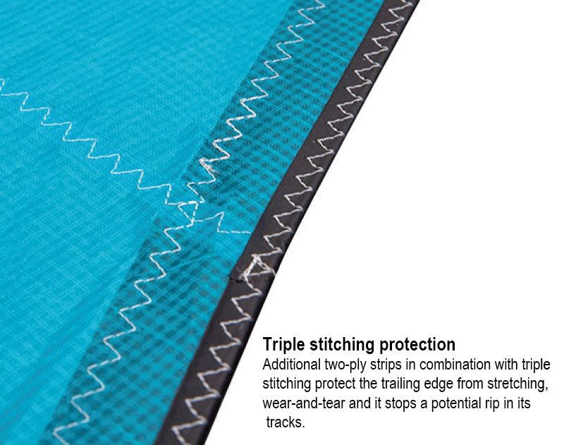 The Leading Edge stitching is relocated to minimize turbulence and to protect the rider we covered the seams as well.