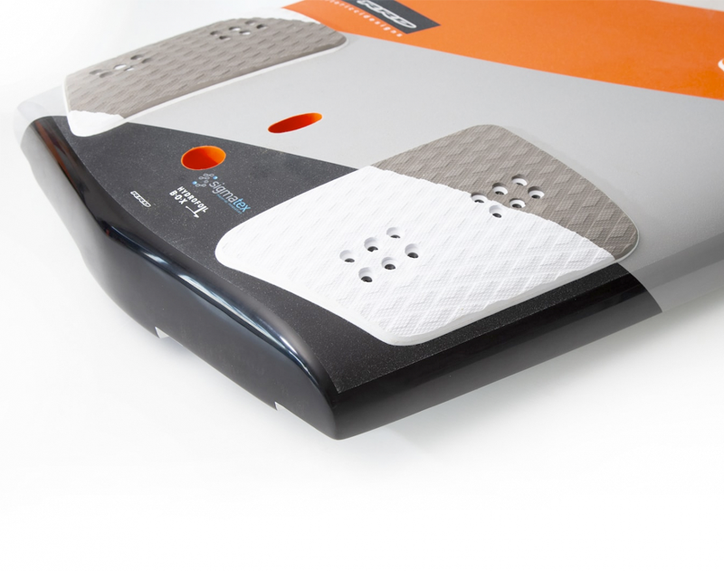 The rocker is optimized for early planing and with specific boxy rails and a wide tail area, the H-FIRE PRO provides a superior pressure potential onto the front wing of the hydrofoil to improve stability at top speeds.