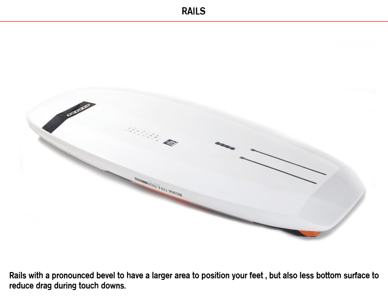 The rails, with a pronounced bevel, allows you to have a larger area to position your feet and less bottom surface to reduce the drag during touch downs. A pronounced kicker on the tail makes you fly in no time when pumping it and keep control during your tricks.