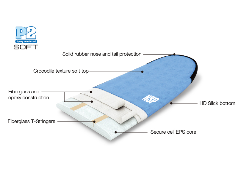 Unlike conventional softboards, the P2 is a fully glassed, high-quality hard board laminated with soft foam to create the most durable soft board on the market.