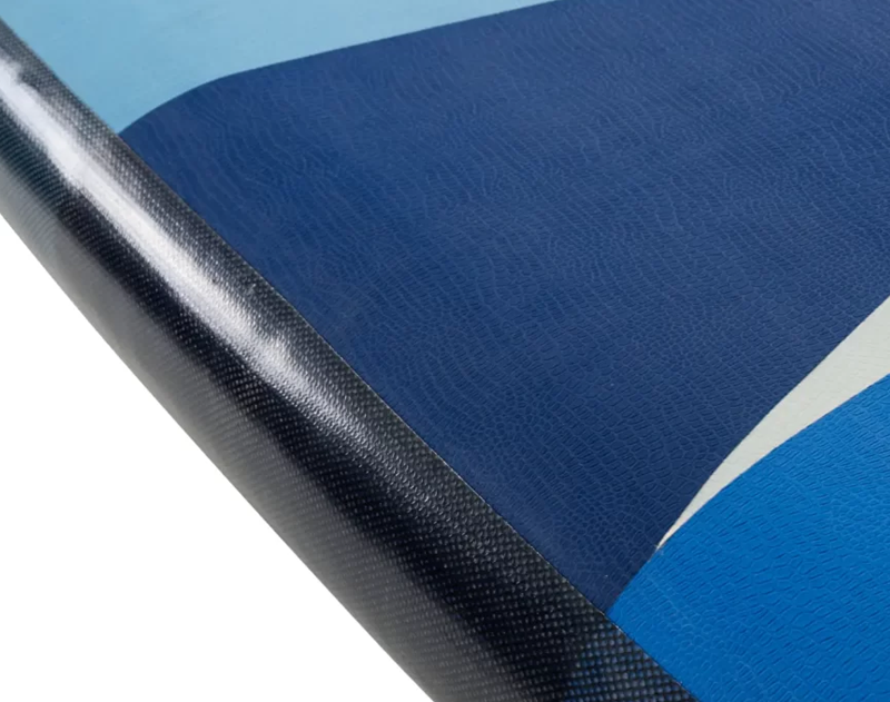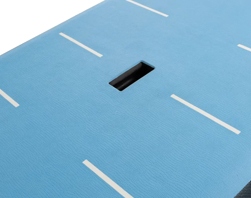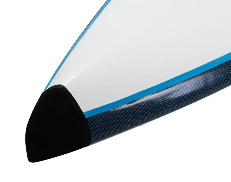ソフトトップの EVA パッド、ボトム面には耐衝撃性を持ちながらソフト素材で安全な PE SLICK( ポリエチレン樹脂素材)を使用。さらにレイル部分にはパドルの衝撃を防ぐプロテクターが標準装備されている。ノーズとテイル部分にはラバー素材のバンパーとハンドルも装備。インストラクターがボードコントロールの補助を行ったり、スクール生が持ち運ぶときに非常に便利になっている。