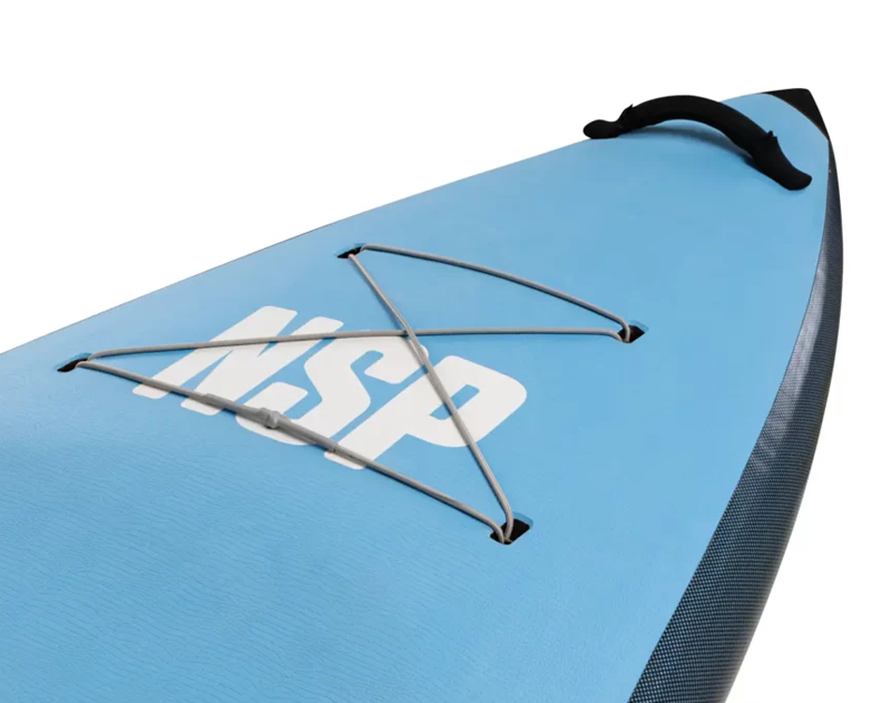 • The board is equipped with bungee inserts on the nose for cargo straps to take food, water, lifejackets and camping gear.