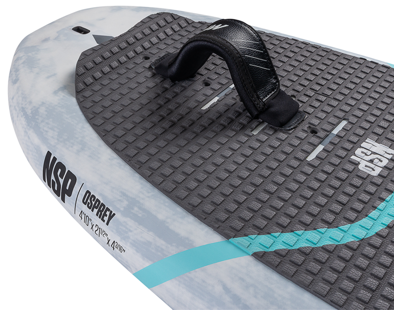 The NSP Osprey is a versatile foilboard designed to excel across both wing and prone foiling disciplines. Its refined shape balances early lift, control, and efficiency, making it a solid choice for riders looking to progress in multiple foiling styles. A compact outline with a slightly pulled-in nose reduces swing weight for responsive turns, while the carefully tuned rocker and volume distribution ensure smooth takeoffs and effortless glide. The concave deck enhances stability and control, while reinforced foot strap inserts provide multiple stance options. Whether you’re pumping down the line, linking bumps, or cruising with a wing, the Osprey delivers a dynamic and responsive ride.