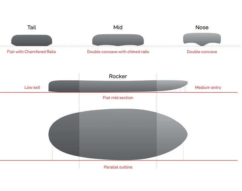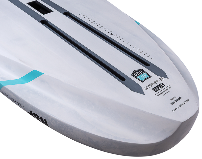 characteristics of the Hotshot, ensuring a smooth and forgiving ride when conditions demand control and stability. This fusion of speed, flow, and adaptability makes the Osprey a go-to board for riders looking to push their limits in both prone and wing foiling.