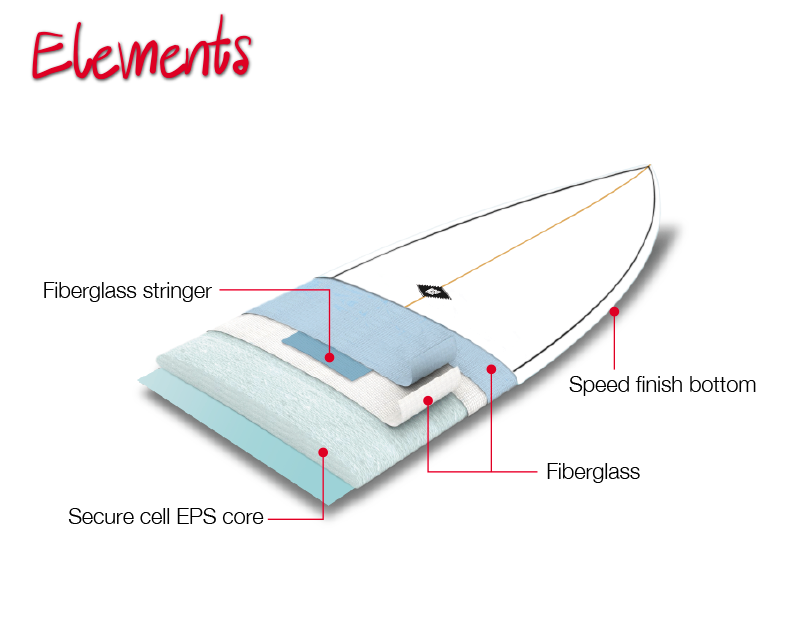 EPS コアフォームをモールド工法で成形した耐久性とフレックス性能を備えた Elementsシリーズ。