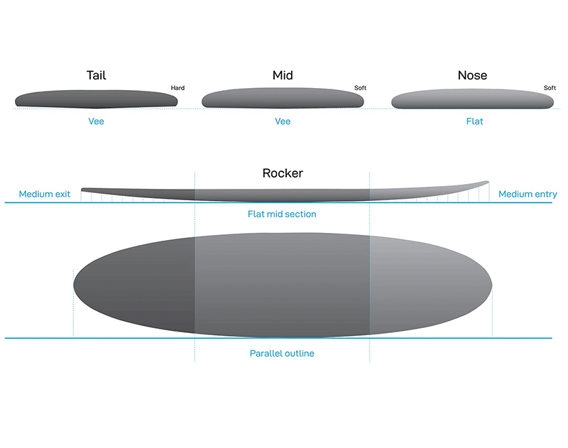 Marcie O'Neillが手掛けるシェイプはビギナーからエキスパートまで全てのレベルのサーファーが満足できるデザインとなっている。。