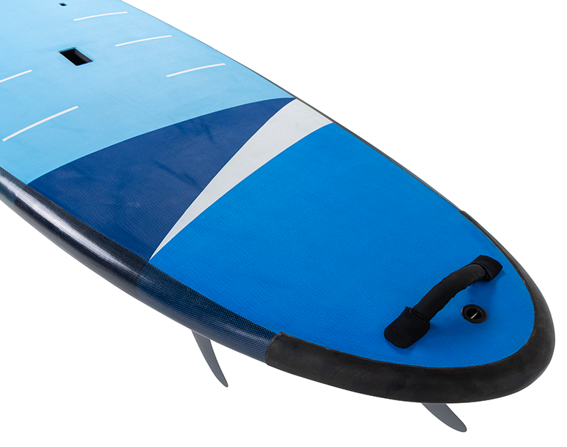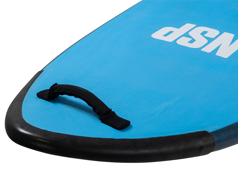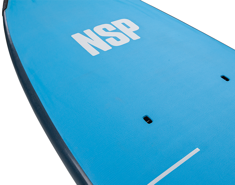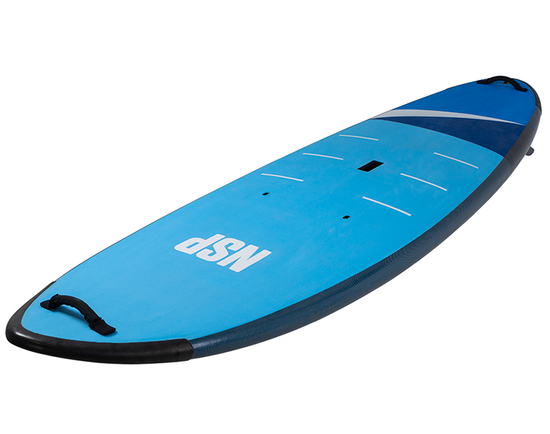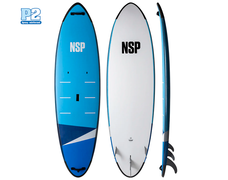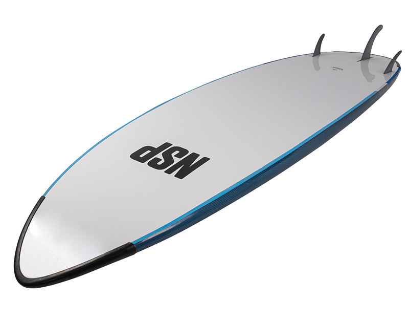 NSP が安全性とスクーリングに最も力を入れ開発したソフトデッキ・シリーズ。ボディーボード素材のソフトボードとは違い、EPS フォームに軍用レベルでも使用可能なファイバーグラスをラミネート。そのラミネートされたEPS フォームのデッキ面にはソフトトップのEVA パッド、ボトム面には耐衝撃性を持ちながらソフト素材で安全な PE SLICK( ポリエチレン樹脂素材)を使用。さらにレイル部分にはパドルの衝撃を防ぐプロテクターが標準装備されている。ノーズとテイル部分にはラバー素材のバンパーとハンドルも装備。インストラクターがボードコントロールの補助を行ったり、スクール生が持ち運ぶときに非常に便利になっている。