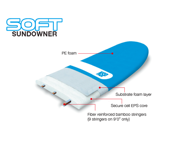 Also for surfers traveling, and not wanting to rely on last-minute rentals or for families in need of a softboard that everyone can use. The Sundowner is light and surfs well and combined with solid FTU fin boxes so you can choose the fins you want to use are a proven recipe for fun.All Sundowners come with a thruster setup and three FTU-compatible fins, except for the 9’0″ which is supplied with the patented Click Fin system. What makes the Click Fin great is that you conveniently set it up on the beach – no tools required. And adding a simple washer and screw will allow you to secure your click fin the old-fashioned way too.