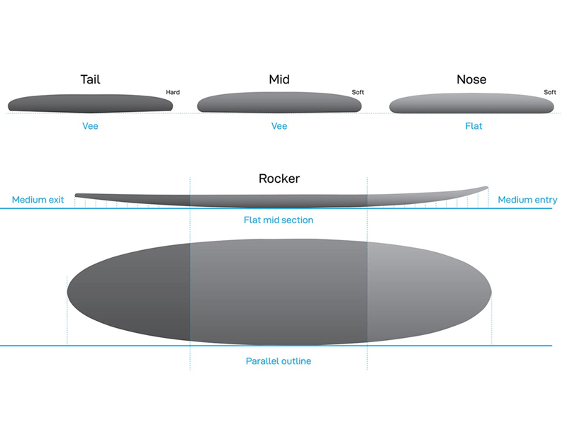 • Concave bottom creates a fast water transition through to the tail, providing balance and control in a wide range of conditions.
